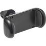 Autós telefontartó. A műszerfal szellőzőjéhez csatlakoztatható és 360 fokban elforgatható. Kihúzható oldalakkal a különböző okostelefonokhoz. ABS, PVC. Emblémázás: Tamponnyomás