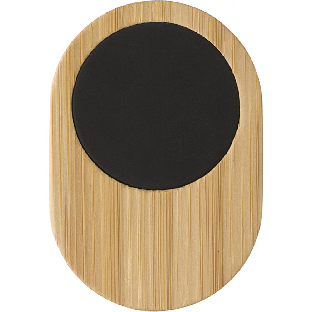 Mágneses, bambusz telefontartó autóba. Csomagolása barna kartondoboz. Emblémázás: Gravírozás, Tamponnyomás