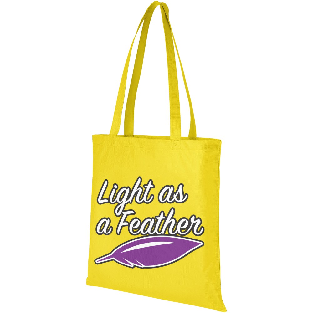 A Zeus nagyméretű, nemszőtt táska tökéletes választás konferenciákra, kiállításokra. Fülek magassága 29,2 cm. Újrahasznosítható anyag. 80 g/m2 nemszőtt polipropilén. Emblémázás: Szitanyomás