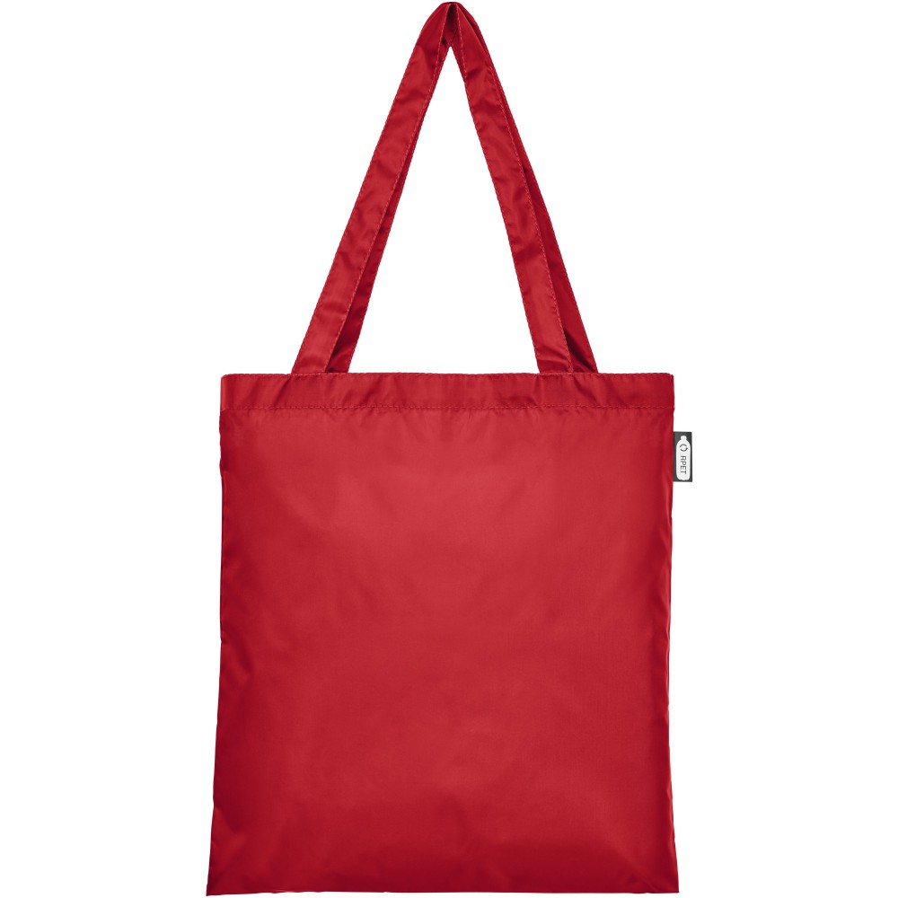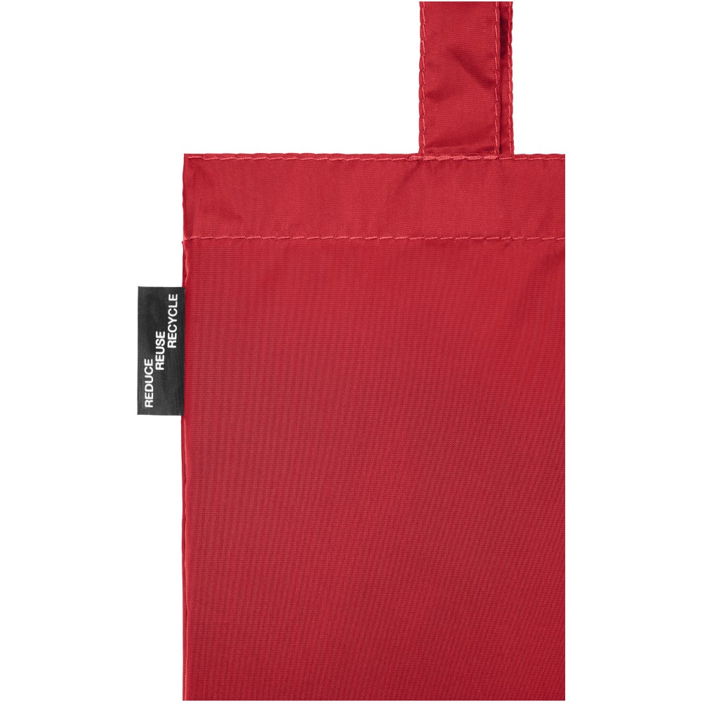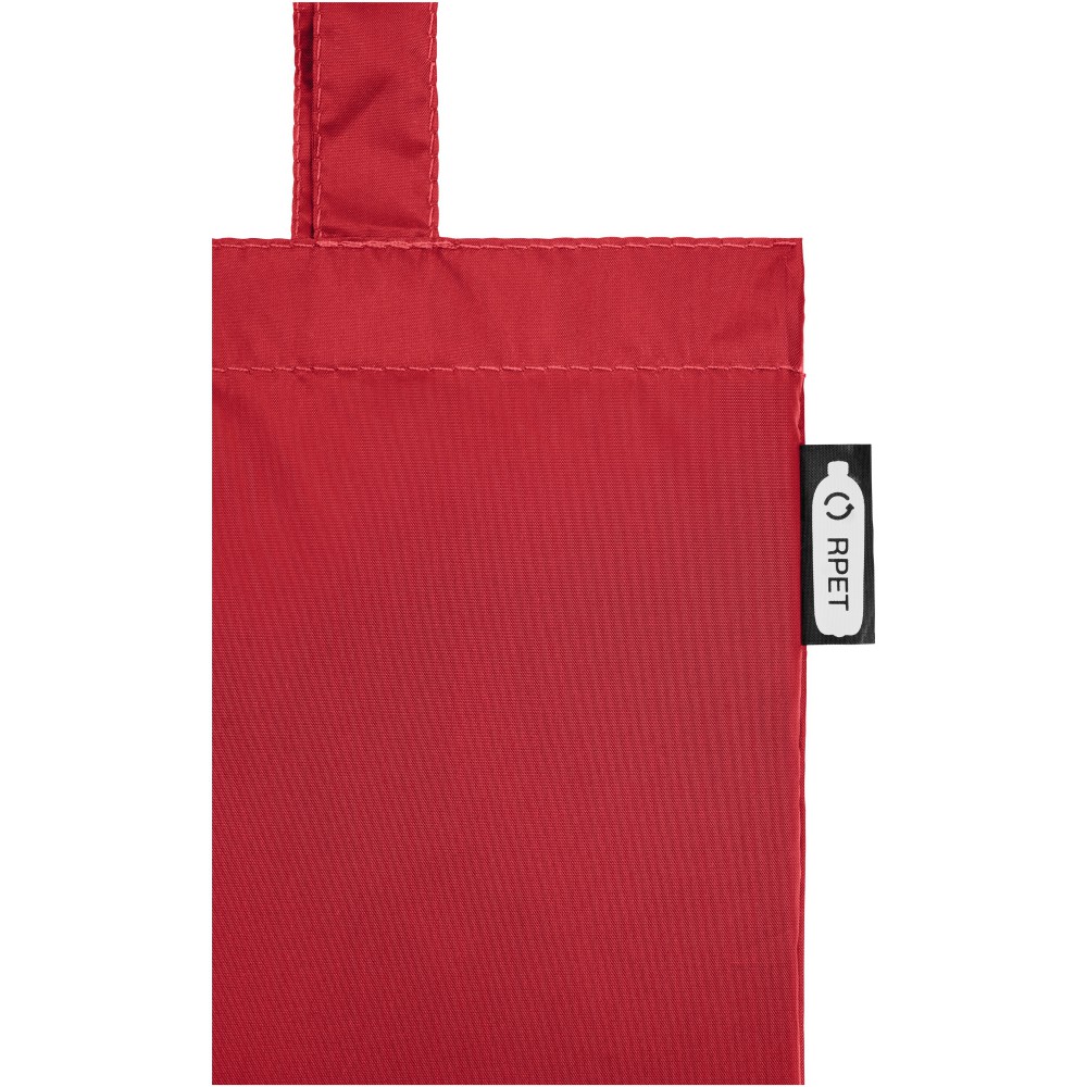 Erős táska anyaga 100% -ban újrahasznosított műanyagból készült, amely hozzájárul a műanyaghulladék csökkentéséhez. Fülmagassága 27 cm. Teherbírás: 10 kg. 190T of újrahasznosított PET műanyag. Emblémázás: Szitanyomás