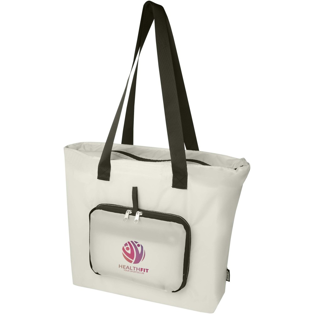 Ez a könnyű, mégis tartós bevásárlótáska a kényelem és praktikusság jegyében készült. Könnyedén a kompakt tasakba hajtható, amelyen hurok található a kényelmes hordozás érdekében - tökéletes rohanós napokra, spontán bevásárlásokhoz vagy tartalék táskaként. Tágas cipzáras főrekesszel, cipzáras elülső zsebbel és két hosszú, sima szövött anyagból készült fogantyúval rendelkezik. PVC-mentes újrahasznosított poliészterből készült. Űrtartalma: 16 liter. Emblémázás: Szitanyomás