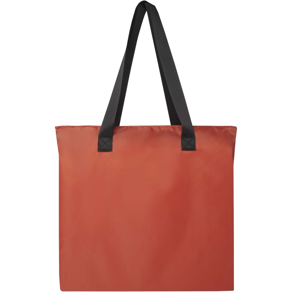 Ez a könnyű, mégis tartós bevásárlótáska a kényelem és praktikusság jegyében készült. Könnyedén a kompakt tasakba hajtható, amelyen hurok található a kényelmes hordozás érdekében - tökéletes rohanós napokra, spontán bevásárlásokhoz vagy tartalék táskaként. Tágas cipzáras főrekesszel, cipzáras elülső zsebbel és két hosszú, sima szövött anyagból készült fogantyúval rendelkezik. PVC-mentes újrahasznosított poliészterből készült. Űrtartalma: 16 liter. Emblémázás: Szitanyomás