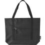 600D rPET poliészter bevásárlótáska. Mindkét oldalon PU bevonat teszi vízlepergetővé. Első cipzáras zsebbel, kicsi, belső cipzáras zsebbel és hosszú hordozófüllel. Kapacitása 10 liter. Oldalán rPET címkével. Emblémázás: Szitanyomás