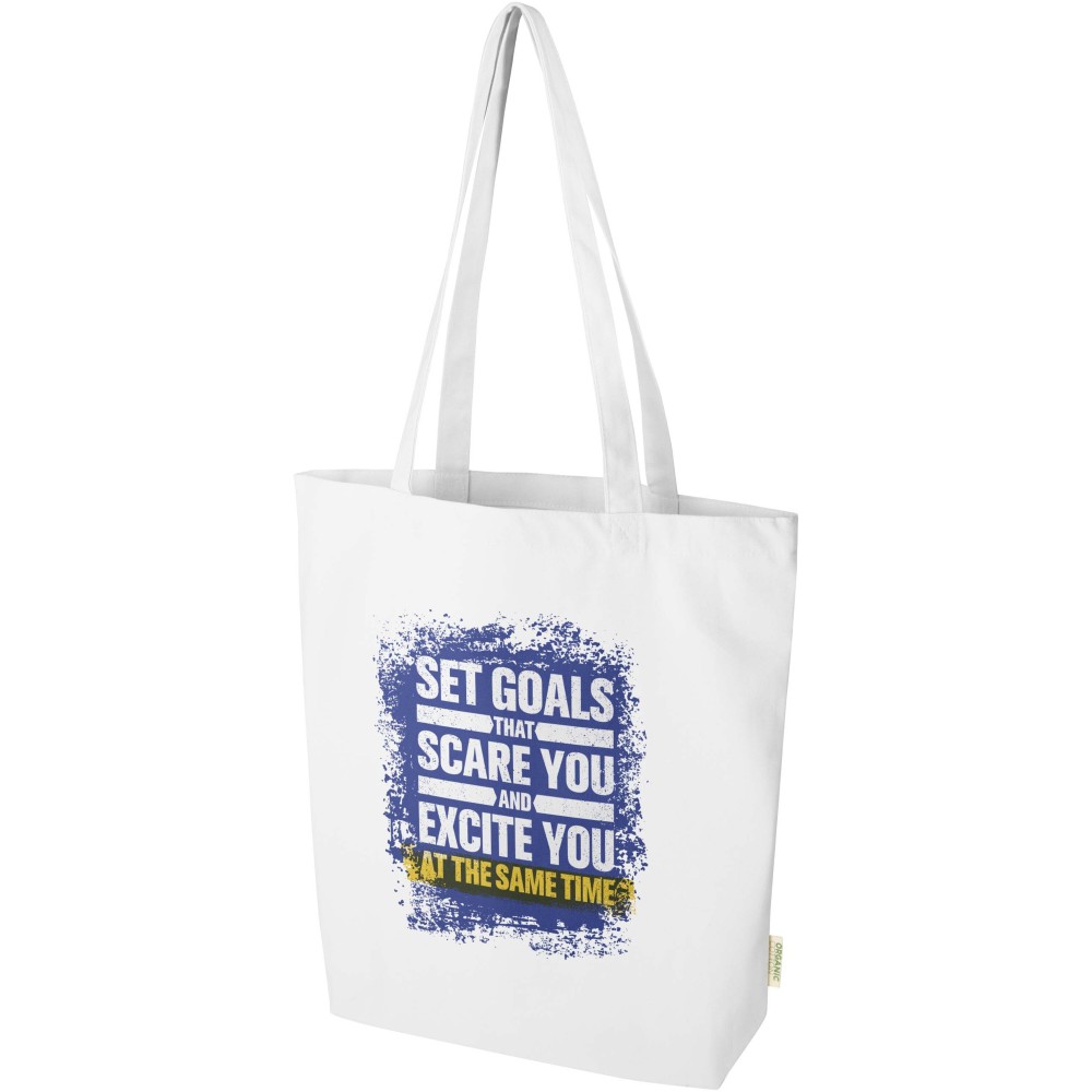 OCS tanúsítvánnyal rendelkező, 100% organikus pamutból készült organikus pamutból készült Odisha bevásárlótáska tartós és felelősségteljes választás a mindennapi használatra. Szélesített talpkialakítása extra helyet biztosít a legfontosabb dolgoknak, így bármilyen alkalomra alkalmas a bevásárlástól kezdve a szabadidős tevékenységekig. Teherbírása: 10 kg. Űrtartalma: 10 liter. 270 g/m2 anyag. Emblémázás: Szitanyomás