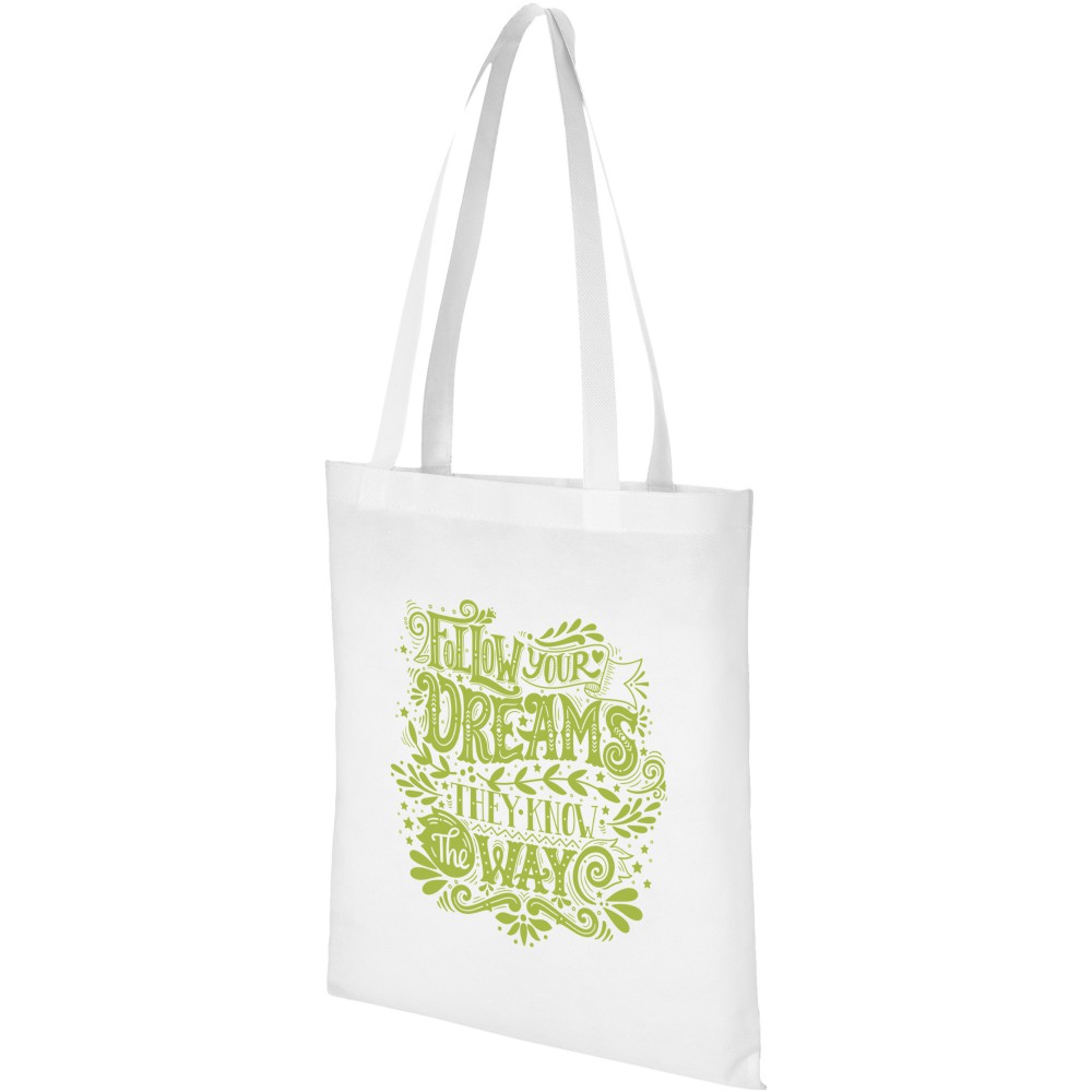 A Zeus nagyméretű, nemszőtt táska tökéletes választás konferenciákra, kiállításokra. Fülek magassága 29,2 cm. Újrahasznosítható anyag. 80 g/m2 nemszőtt polipropilén. Emblémázás: Szitanyomás