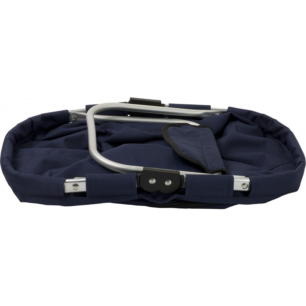 Bevásárlótáska alumínium kerettel, cipzáras oldalzsebbel. 600D poliészter. Emblémázás: Szitanyomás