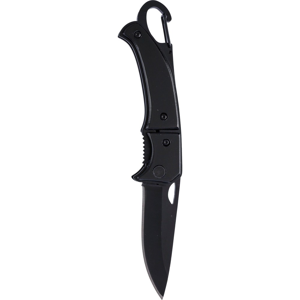 Zsebkés biztonsági zárral, alumínium nyéllel és fém karabinerrel. Figyelmeztetés: a karabiner nem alkalmas hegymászásra. Egyenként barna kartondobozba csomagolva. Anyaga: rozsdamentes acél. Emblémázás: Gravírozás