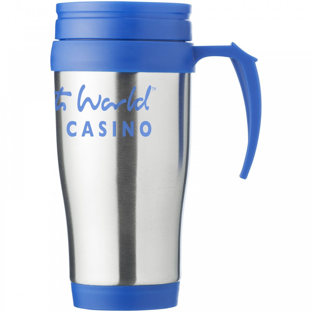 A Sanibel tökéletes bögre italok fogyasztásához útközben. A bögre dupla, szigetelt falú, így sokáig melegen tartja az italokat. A csavaros, elcsúsztatható fedél megkönnyíti az ital fogyasztását. Az ergonomikus hüvelykujjtámaszú fogantyú jó fogást biztosít. A Sanibel bögre rozsdamentes acélból és fekete műanyagból készült, így nagyon erős, korrózióálló és könnyen tisztítható. Nem szivárgásmentes. Szénsavas italokkal is használható. Mosogatógépben nem mosható és mikrohullámú sütőben történő melegítésre nem alkalmas. Űrtartalom: 400 ml. Emblémázás: Gravírozás, Körszita, Tamponnyomás