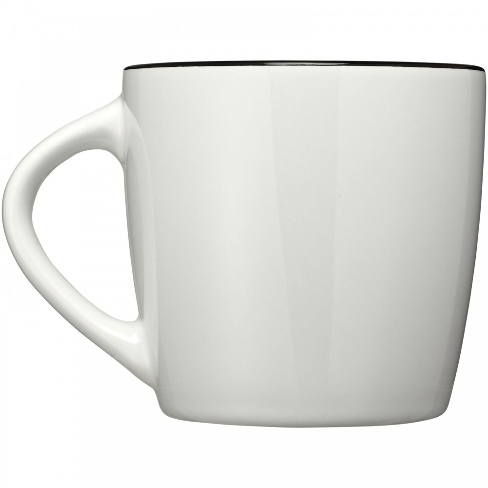 Aztec kerámia bögre fényes külső felülettel és színes belsővel. Az EN12875-1 szabványnak megfelel. Csomagolása fehér doboz. Nem szivárgásmentes. Szénsavas italokkal is használható. Mosogatógépben mosható és mikrohullámú sütőben történő melegítésre alkalmas. Űrtartalom: 350 ml. Emblémázás: Bögredekor