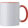 Kerámiabögre színes belsővel és füllel. Szublimációs nyomásra alkalmas. A dobozt tartalmazza az ár. 300 ml. Emblémázás: Szublimálás