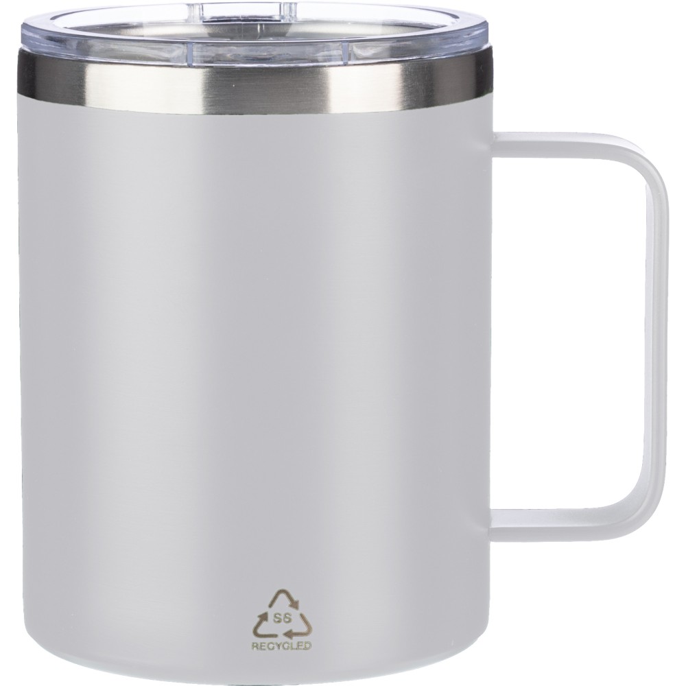 Rozsdamentes acél duplafalú (S/S304) bögre (300 ml) matt felülettel. PS fedél a felső oldalon zárással. A bögre elülső oldalán újrahasznosított rozsdamentes acél logó jelzi az alapanyag milyenségét. Barna kartondobozba egyedileg csomagolva érkezik. Űrtartalom: 300 ml. Emblémázás: Bögredekor, Gravírozás, Tamponnyomás