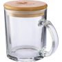 Bögre nátrium-kalciumból készült, bambusz fedéllel, amely poháralátétként is használható. Egyenként barna kartondobozba csomagolva. Anyaga: újrahasznosított üveg. Űrtartalom: 300 ml. Emblémázás: Bögredekor, Gravírozás