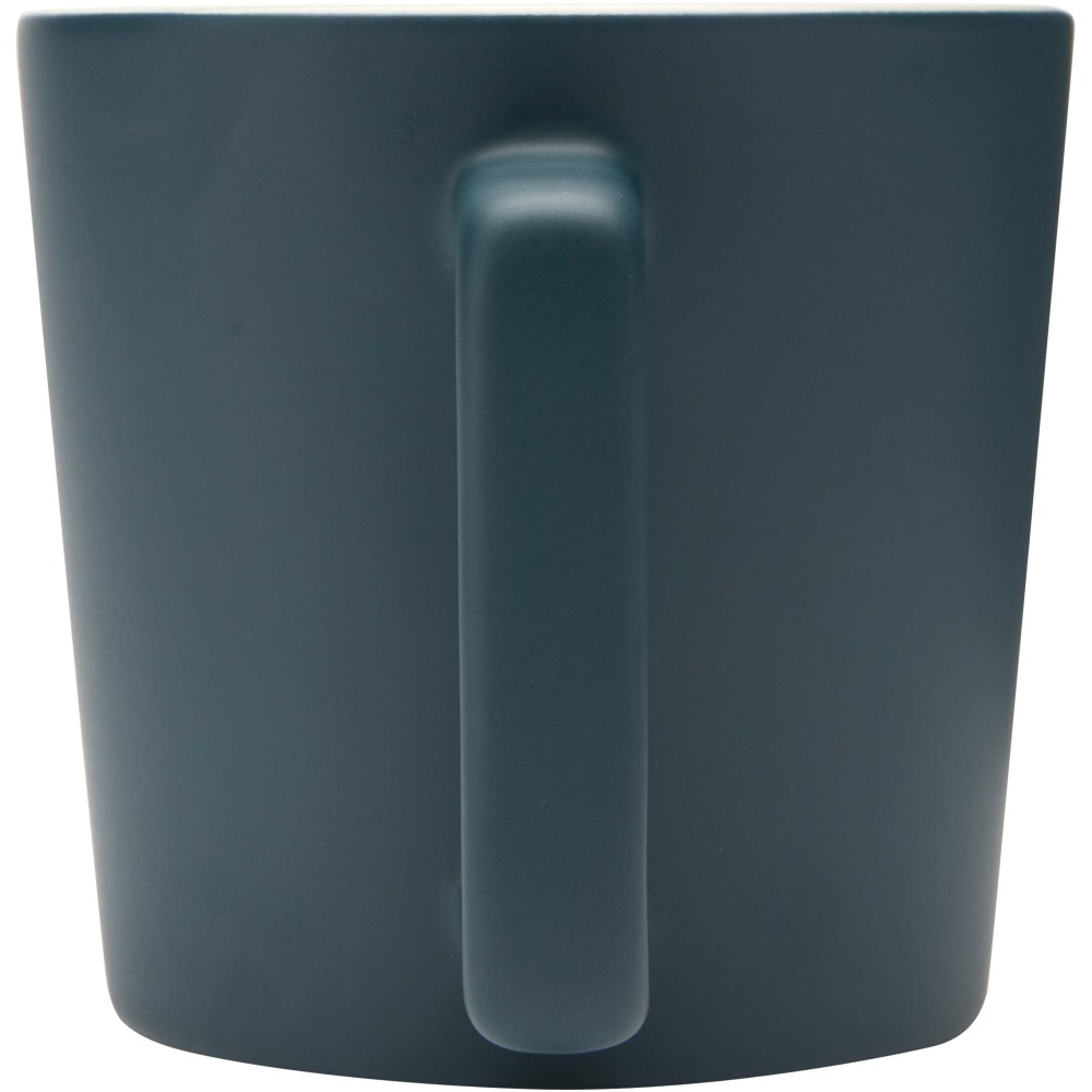 Kerámia bögre modern dizájnnal és matt felülettel. Nem szivárgásmentes. Szénsavas italokkal is használható. Mosogatógépben mosható és mikrohullámú sütőben történő melegítésre alkalmas. Űrtartalom: 370 ml. Újrahasznosított karton díszdobozban. Emblémázás: Bögredekor, Matricázás