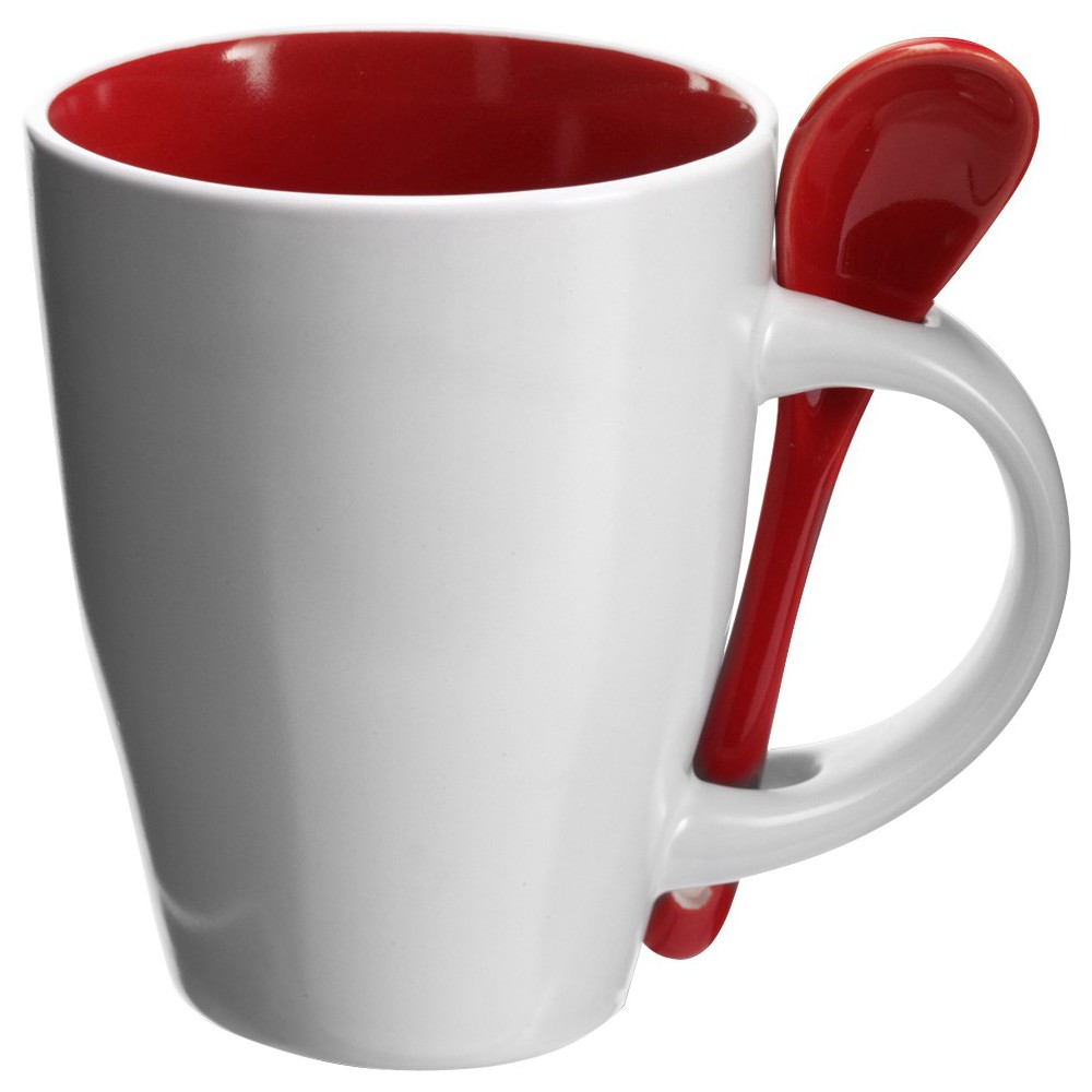 Kerámia bögre kiskanállal, 260 ml. Mosogatógépbe és mikrohullámú sütőbe helyezhető. A dobozt tartalmazza az ár. Emblémázás: Bögredekor