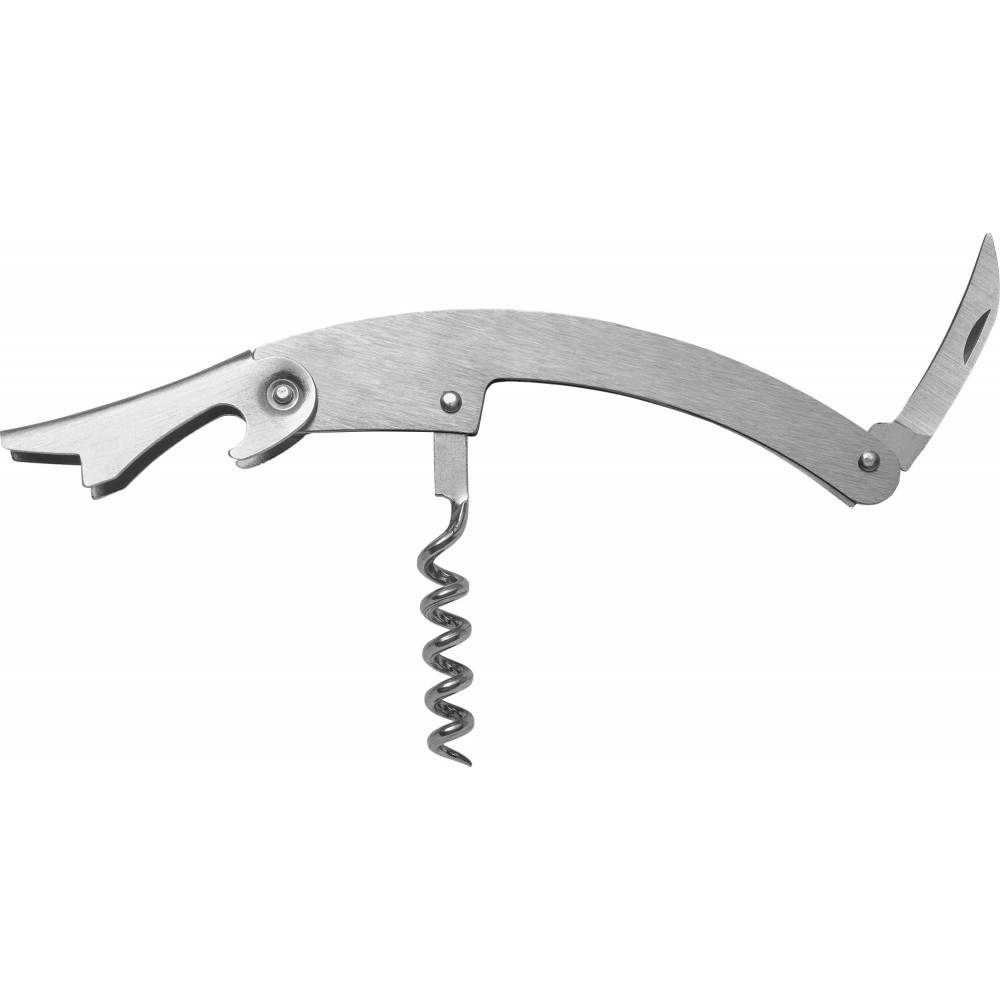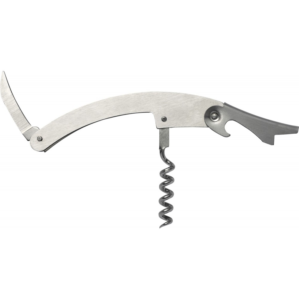 Négy darabos boroskészlet tartalma: palackdugó, dugóhúzó, cseppfogó és egy üvegdugó kiöntővel. Csomagolása ajándékdoboz. Rozsdamentes acél és ABS BPA-mentes műanyag. Emblémázás: Gravírozás, Tamponnyomás