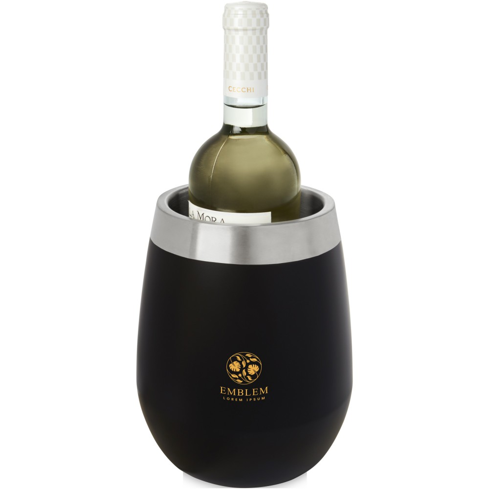 Duplafalú rozsdamentes acél borhűtő színes külső réteggel. A belső acélréteg könnyen tisztítható, és kellemesen és hűvösen tartja a bort. Emblémázás: Gravírozás