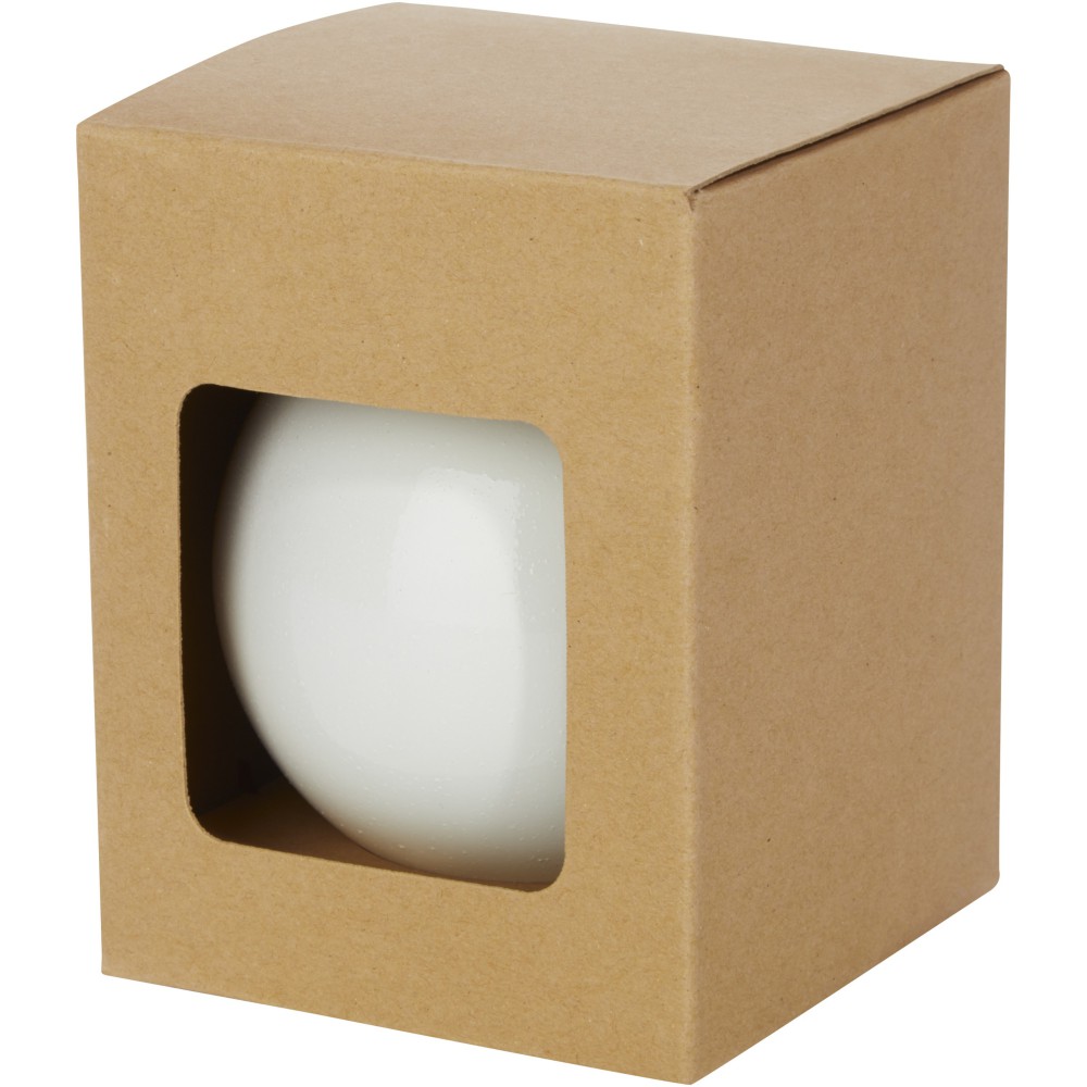 Karácsonyfadísz fényes bevonattal. Csomagolása egyenként ablakos kraft dobozban. Emblémázás: Tamponnyomás
