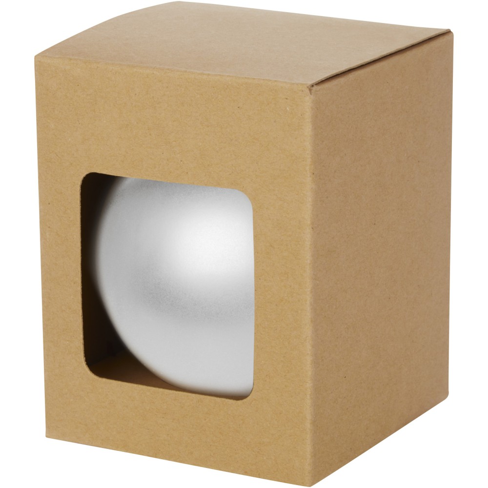 Karácsonyfadísz fényes bevonattal. Csomagolása egyenként ablakos kraft dobozban. Emblémázás: Tamponnyomás