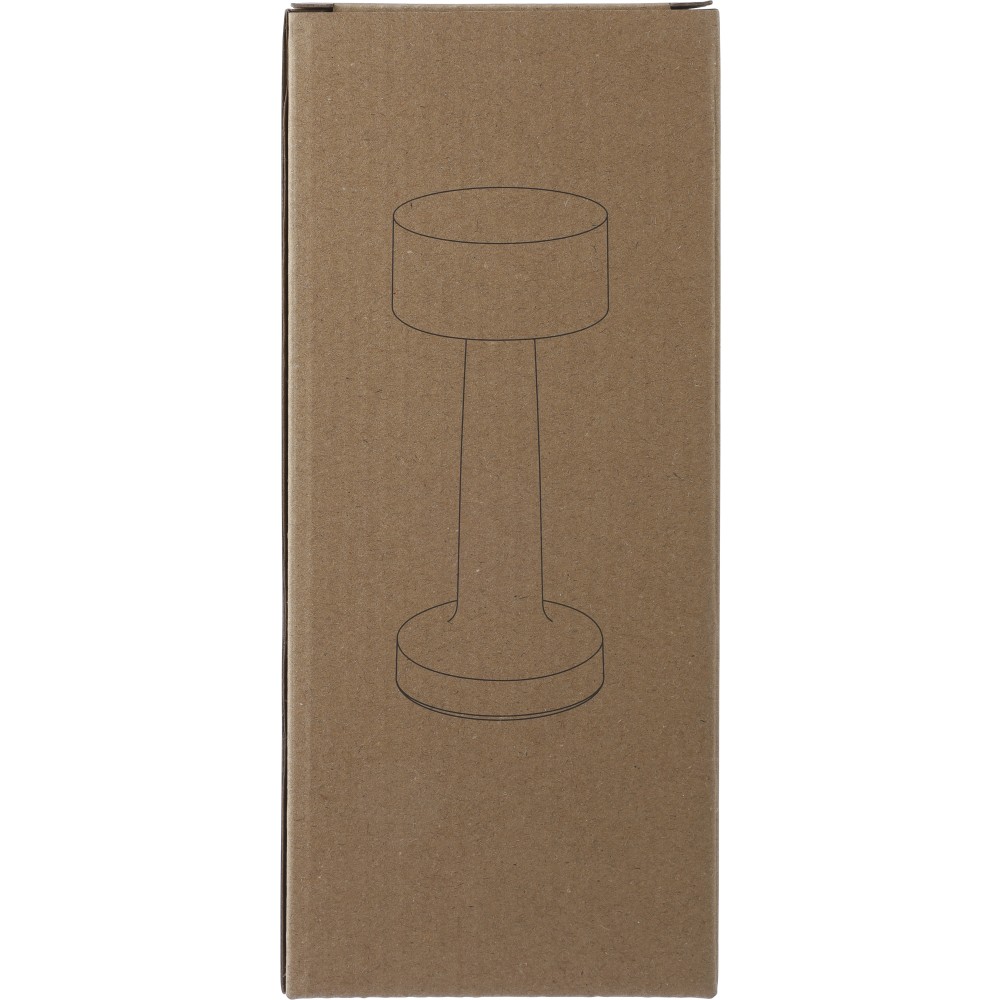 Asztali lámpa 24 LED-del és három világítási móddal (fehér, természetes és meleg). A különböző módok a lámpa tetején lévő érzékelő érintésével változtathatóak. 800 mAh-s akkumulátorral és 1 m hosszú, C-típusú töltőkábellel. A lámpa fénymódonként szabályozható, és az alján ki/bekapcsoló gombbal rendelkezik. Csomagolása barna papírdoboz. Fém, ABS. Emblémázás: Gravírozás
