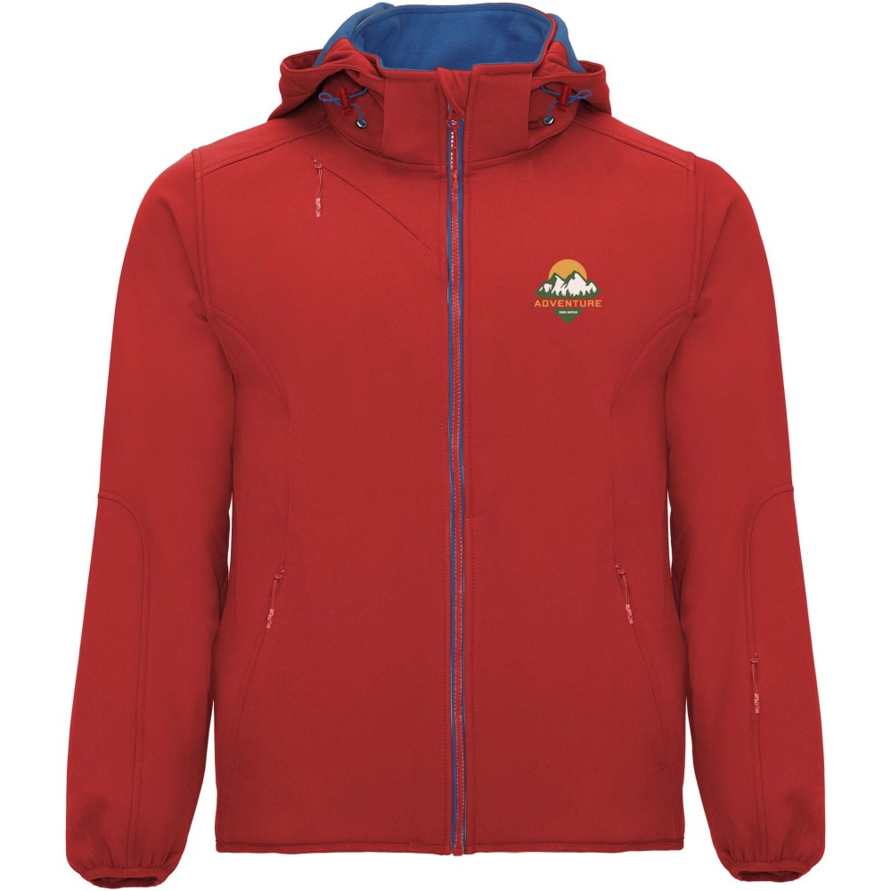 2 rétegű softshell dzseki. Kontrasztos színű cipzár és állvédő. Belső bélés kontrasztos mikropolár anyagból. Külső zseb a jobb mellkason átlós alakú rejtett cipzárral. Két oldalzseb rejtett cipzárral. Zseb a bal ujjon. Megfelelő gumis szegély a kézelőn és az aljon. Behajtható kapucni kontrasztos színű mikropolár béléssel. Vízálló. Szélálló. 92% poliészter és 8% elasztán, 300 g/m2. Bélés: 100% poliészter mikropolár. Emblémázás: Hímzés, Szitanyomás
