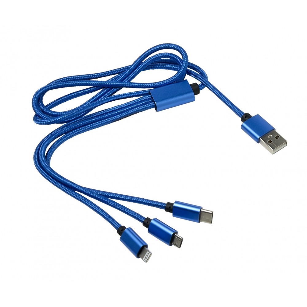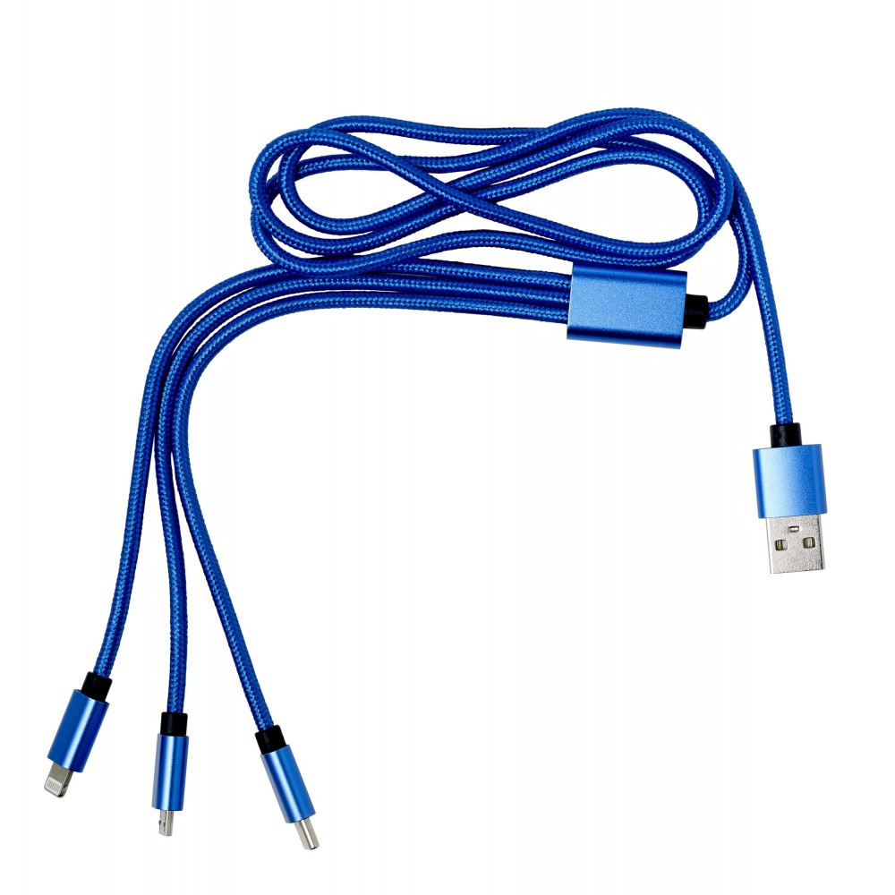 Töltőkábel többféle csatlakozóval, kobaltkék