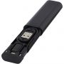 Újrahasznosított műanyagból készült moduláris adat- és töltőkábel, elegáns tárolódobozba csomagolva. A kábel többféle töltési megoldást kínál: C-típusú és USB-A bemenet, valamint C-típusú/iOS/mikroUSB kimenet. Mindezen adaptereknek és csatlakozóknak köszönhetően ez a kábel lehetővé teszi a legtöbb okostelefon, fényképezőgép, powerbank, fülhallgató stb, töltését. A kábel maximális kimeneti teljesítménye 2A. Rendelkezik egy SIM tűvel, amely bármikor jól jön, amikor ki kell venned a telefon SIM-kártyáját. A tárolódobozban egy micro SD memóriakártya, valamint egy nano SIM-kártya tárolására is van hely, így ez a tökéletes utazási kiegészítő. Kábel hossza: 28 cm. 100%-ban újrahasznosított borítékban szállítjuk. Emblémázás: Tamponnyomás, UV nyomtatás