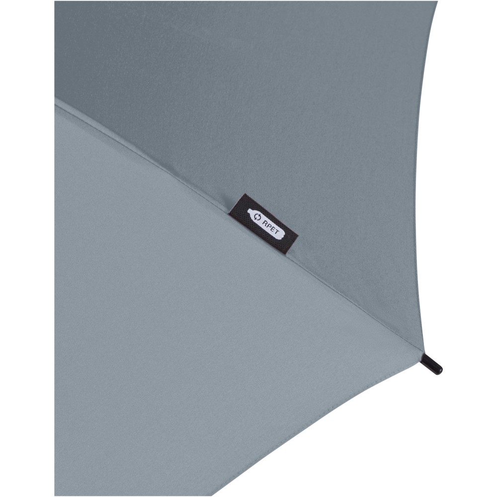 23 méretű, automata esernyő, újrahasznosított PET pongee ernyővel. Stabil fémszárral, üvegszálas vázzal és kényelmes EVA fogantyúval rendelkezik, színben passzoló véggel. Nagy nyomtatási terület minden egyes panelen. Emblémázás: Szitanyomás