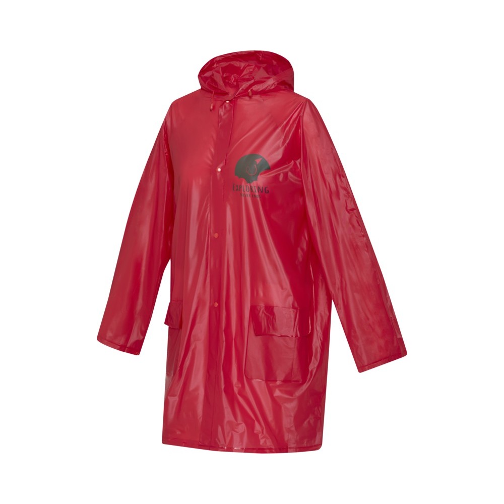 Az Ada esőkabát - ahol a stílus és a funkcionalitás találkozik esős időben. PVC külsővel készült, amely vízálló védelmet nyújt, így szárazon és kényelmesen tart. A gombok és a zsinór színben harmonizálnak a PVC külsővel, egységes és divatos megjelenést biztosítva. Az egy méretben kapható Ada esőkabát tökéletes társad esős napokon, praktikus és divatos megjelenést kínál, bármerre is mész. Anyaga: PVC műanyag. Emblémázás: Szitanyomás