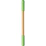 Bambusz végtelenített ceruza és golyóstoll. Az egyik oldalon végtelenített ceruza, a másikon golyóstoll, mindkettő színes karton kupakkal. Kék tollbetéttel. Emblémázás: Gravírozás, Tamponnyomás