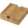 4 darabos bambusz poháralátét készlet bambusz tálcán. Csomagolása ajándékdoboz. Emblémázás: Gravírozás, Tamponnyomás