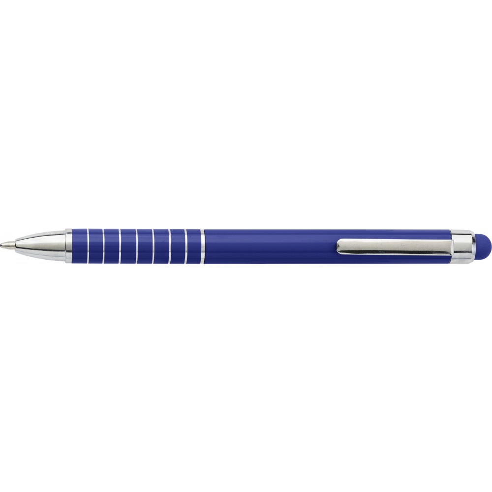 Lakkozott felületű alumínium golyóstoll érintővel, kék tollbetéttel. Emblémázás: Gravírozás, Tamponnyomás, UV nyomtatás