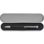 Golyóstoll gumis bevonattal, érintővel, fekete tollbetéttel. Csomagolása fém tolldoboz. Alumínium. Emblémázás: Gravírozás, UV nyomtatás