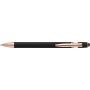Alumínium golyóstoll rózsaarany részletekkel és érintővel, kék tollbetéttel. Emblémázás: Gravírozás, UV nyomtatás