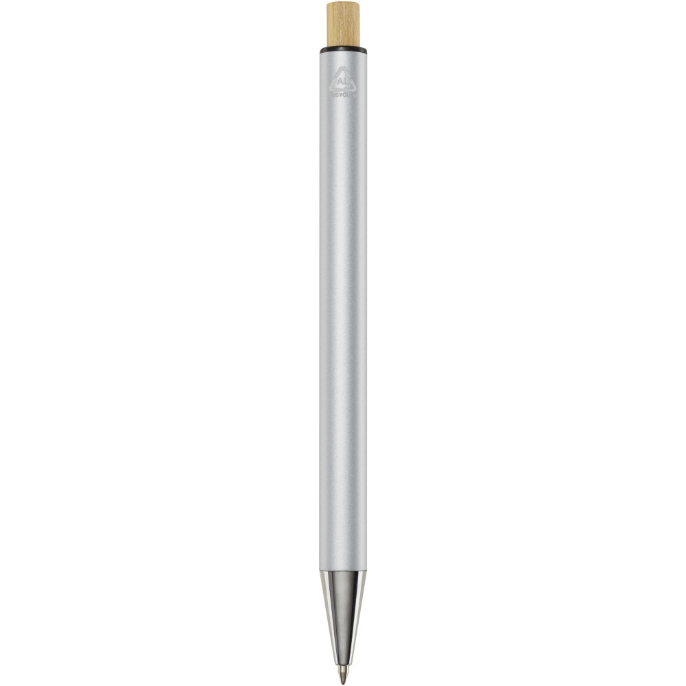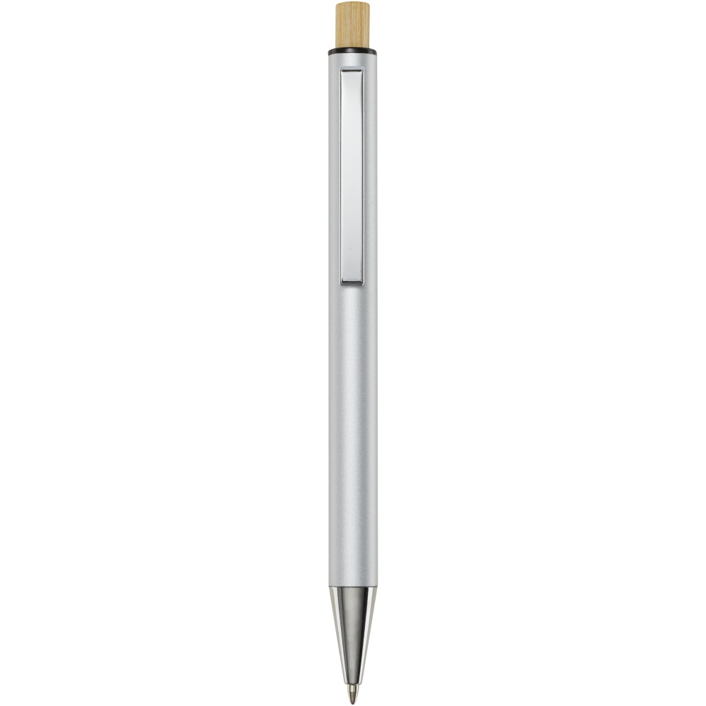 A Cyrus golyóstollújrahasznosított alumíniumból készül, ami kevesebb energiát igényel, mint az alumínium nyersanyagból történő előállítása. Emellett csökkenti a hulladéklerakókba kerülő hulladék mennyiségét és hozzájárul a természeti erőforrások megőrzéséhez, amelynek célja az üvegházhatású gázok kibocsátásának csökkentése. A nyomógomb bambuszból készült. Tollbetét színe: kék. Íráshossz: 800 méter. Tollhegy mérete: 1,00 mm. Emblémázás: Gravírozás, Tamponnyomás