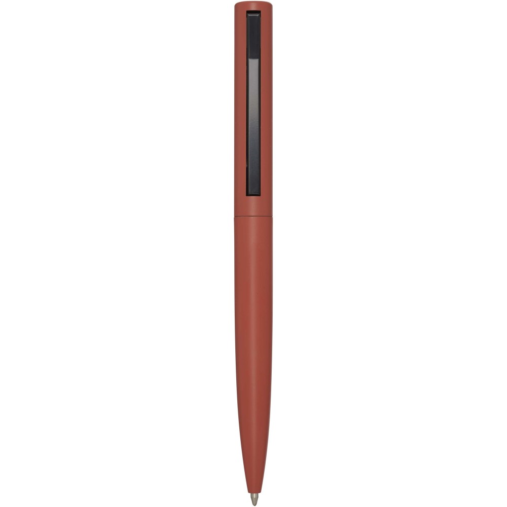 Golyóstoll, melynek felső teste újrahasznosított műanyagból, alsó része pedig újrahasznosított alumíniumból készült. A klipsz vasból készült. Kék tollbetéttel. Írási hossz: 1000 méter. Hegyméret: 1,0 mm. Emblémázás: Gravírozás