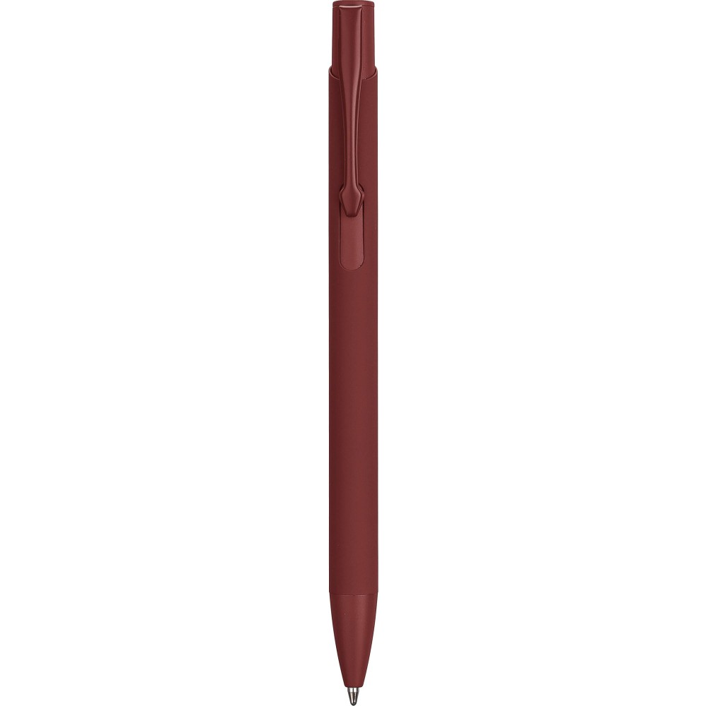 Újrahasznosított alumíniumból készült golyóstoll gumírozott bevonattal a tolltesten. A klipsz, a tollhegy és a nyomógomb azonos színű. A klipsz fémből, a tollhegy műanyagból készült. Kb. 800 méter íráshossz. Gravírozott újrahasznosított alumíniumra utaló logóval. Kék tollbetéttel. Emblémázás: Gravírozás, UV nyomtatás