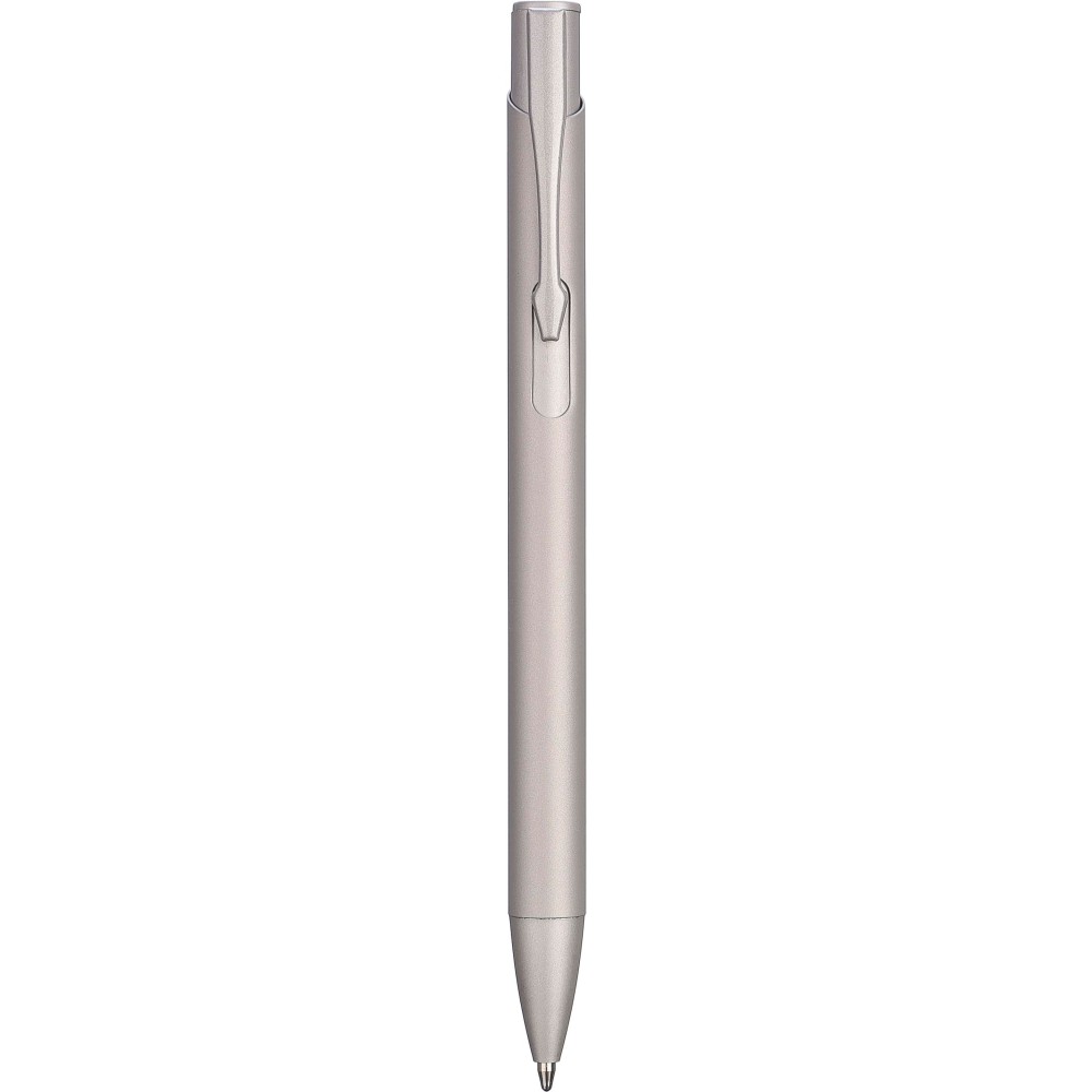 Újrahasznosított alumíniumból készült golyóstoll gumírozott bevonattal a tolltesten. A klipsz, a tollhegy és a nyomógomb azonos színű. A klipsz fémből, a tollhegy műanyagból készült. Kb. 800 méter íráshossz. Gravírozott újrahasznosított alumíniumra utaló logóval. Kék tollbetéttel. Emblémázás: Gravírozás, UV nyomtatás