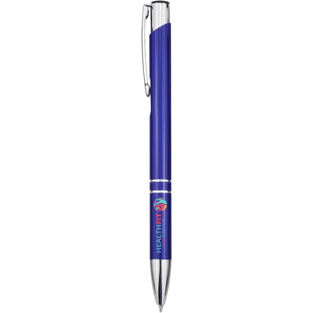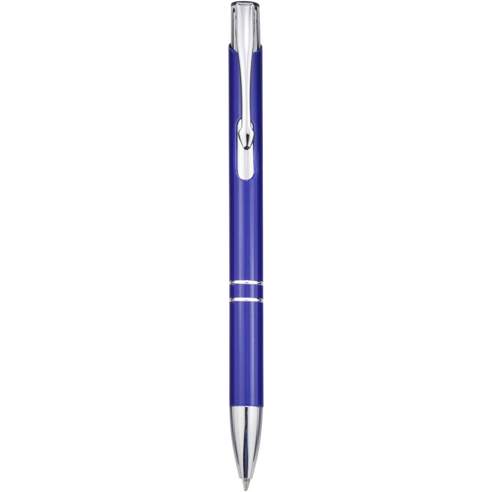 Golyóstoll újrahasznosított alumíniumból, lakkozott felülettel és króm részletekkel. Az újrahasznosított alumínium csökkenti a hulladéklerakók terhelését, segít megőrizni a természeti erőforrásokat és hozzájárul az üvegházhatású gázok kibocsátásának csökkentéséhez. Tinta színe: kék. Íráshossz: 1000 méter. Tollhegy mérete: 1,0 mm. Emblémázás: Gravírozás, Tamponnyomás