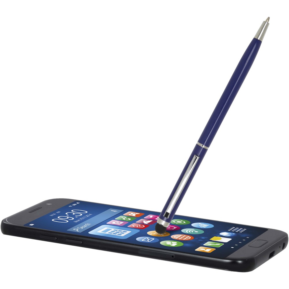 Ez a sokoldalú érintőceruzával ellátott golyóstoll tartós alumíniumból készült. A toll sima írást biztosít, míg a beépített érintőképernyős vég a pontos online navigációhoz ideális. Tinta színe: kék. Íráshossz: 1000 méter. Tollhegy mérete: 1,0 mm. Emblémázás: Gravírozás