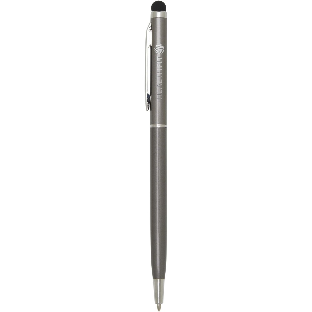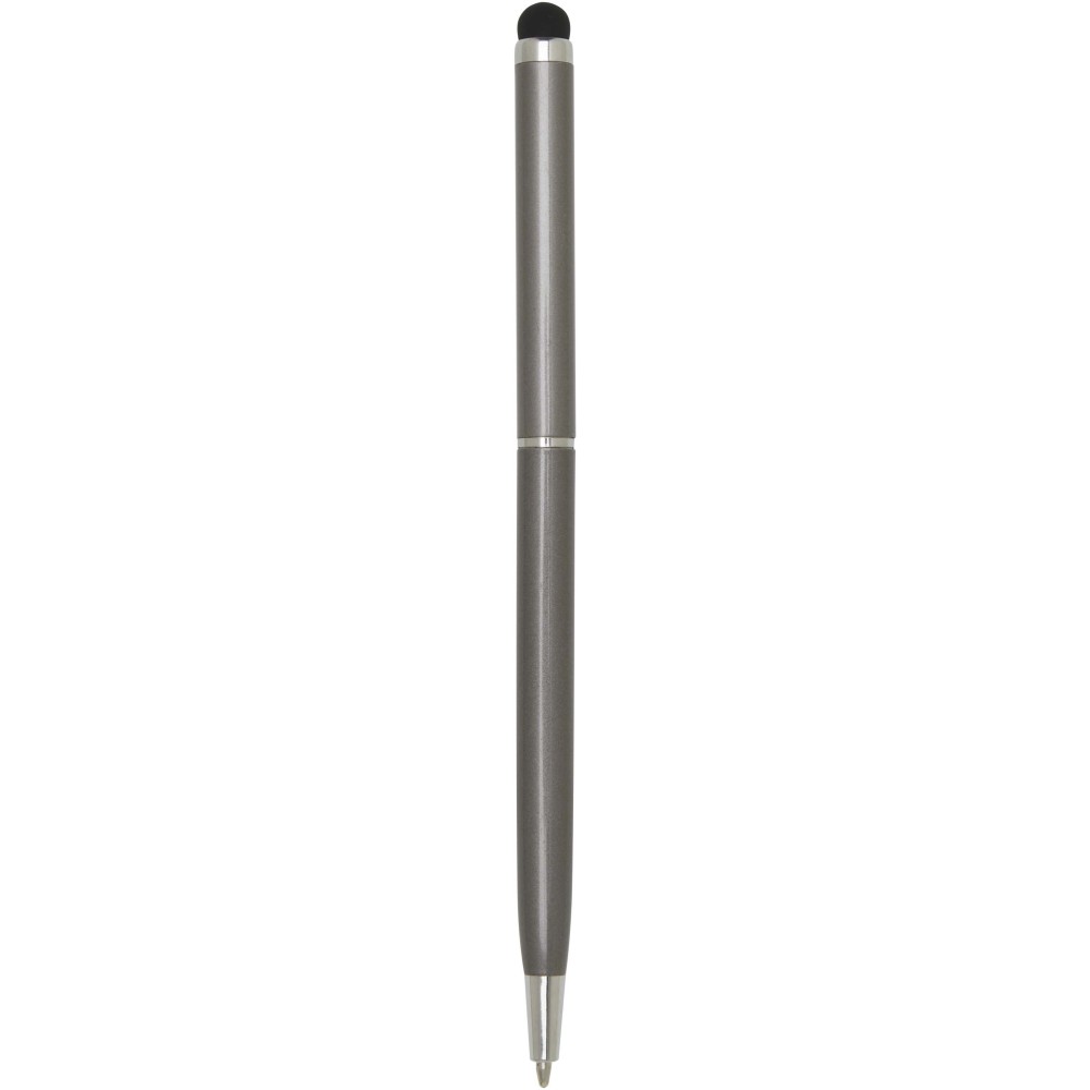 Ez a sokoldalú érintőceruzával ellátott golyóstoll tartós alumíniumból készült. A toll sima írást biztosít, míg a beépített érintőképernyős vég a pontos online navigációhoz ideális. Tinta színe: kék. Íráshossz: 1000 méter. Tollhegy mérete: 1,0 mm. Emblémázás: Gravírozás