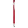 Újrahasznosított alumínium golyóstoll gumírozott felülettel. Bordázott részletekkel a markolaton és a tetején, krómozott műanyag heggyel és fém klipsszel ellátott nyomógombbal. Lézergravírozott újrahasznosított logóval. Kék tintával. Emblémázás: Gravírozás