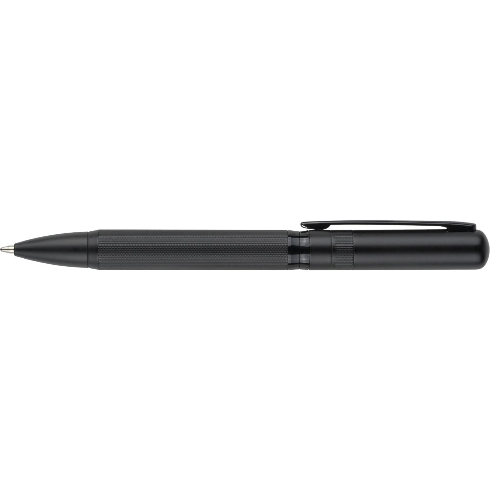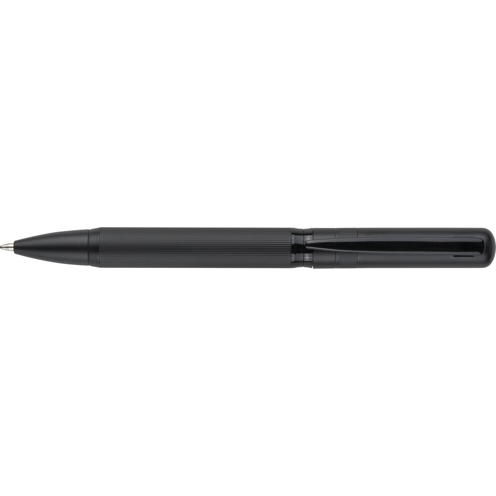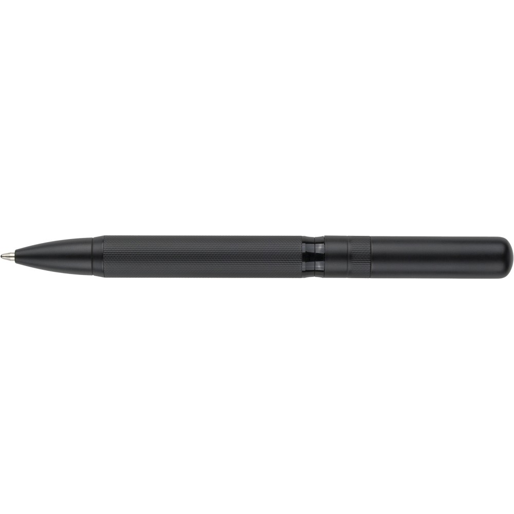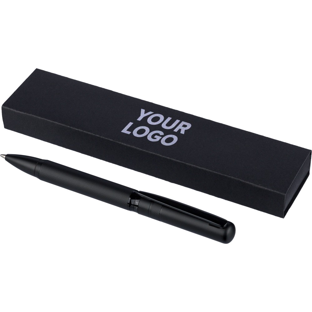 Ólommentes, környezetbarát Ecobrass rézötvözetből készült csavarós golyóstoll a toll színével harmonizáló fém klippel és forgó mechanizmussal. Kék színű, német Dokumental tollbetéttel felszerelve, megközelítőleg 1 000 méter íráshosszal. Darabonként fekete tolódobozba csomagolva. Emblémázás: Gravírozás, Tamponnyomás