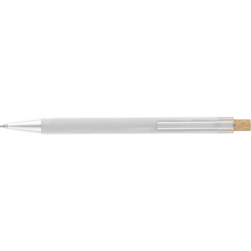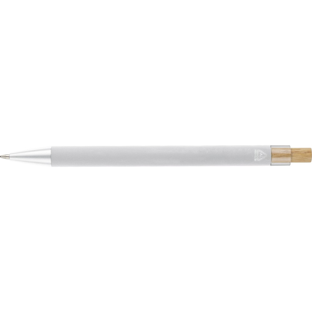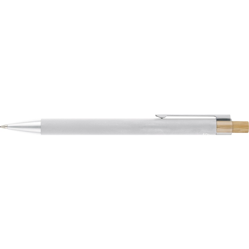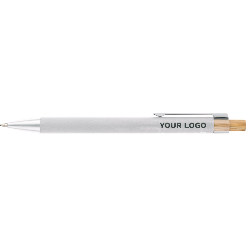 Újrahasznosított alumíniumból készült golyóstoll bambusz nyomógombbal és AS műanyag díszítéssel, fém klippel és a toll színével harmonizáló műanyag tollheggyel. A tolltesten lézergravírozott recycled (újrahasznosított) alapanyagra utaló logó található. Megközelítőleg 800 méter íráshosszúságú, kék színű tollbetéttel. Emblémázás: Gravírozás