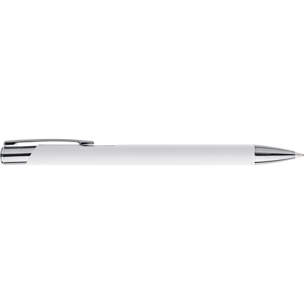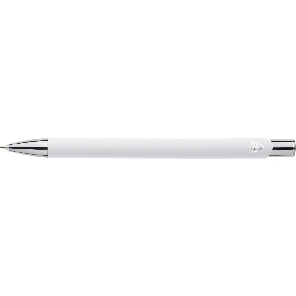 Újrahasznosított alumíniumból készült, gumírozott felületű golyóstoll, a toll színével harmonizáló UV-bevonatú műanyag és fém díszítéssel. Gravírozás után fényes tükörhatás jelenik meg. A tolltesten gravírozott recycled (újrahasznosított) alapanyagra utaló logó található. Megközelítőleg 800 méter íráshosszúságú, kék színű tollbetéttel. Emblémázás: UV nyomtatás,