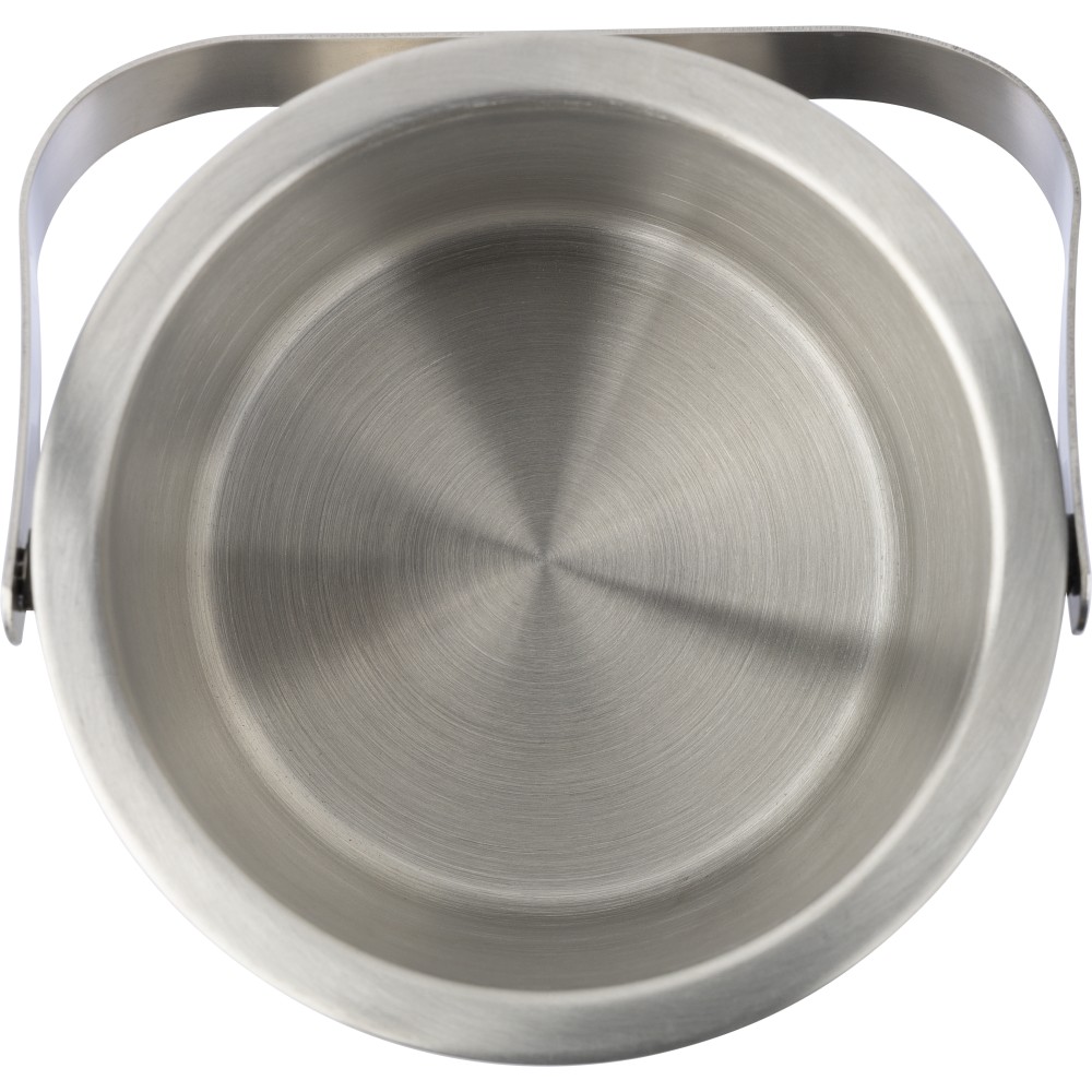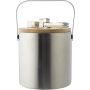 Duplafalú jegesvödör bambuszfedéllel és rozsdamentes acél fogantyúval. A belső 304-es, a külső pedig 201-es rozsdamentes acélból készült. Jégcsipesszel, 1200 ml-es űrtartalommal. Csomagolása barna papírdoboz. Emblémázás: Gravírozás
