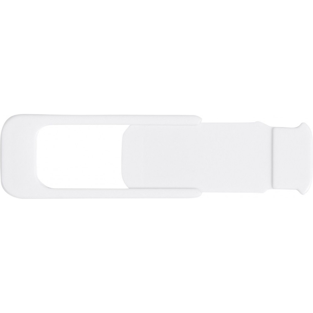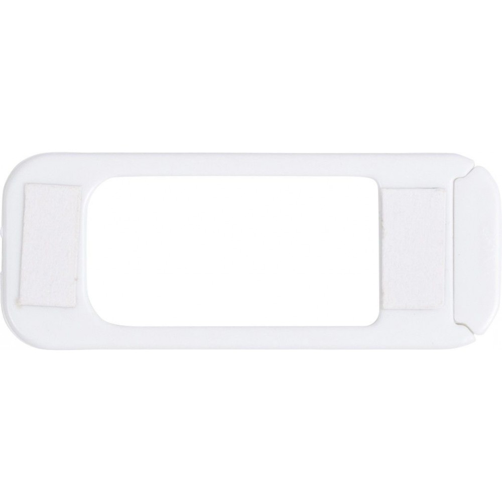 Webkamera takaró kétoldalas ragasztóval. A fedél könnyen, csúsztatva nyitható és zárható. PP műanyag. Emblémázás: Tamponnyomás, UV nyomtatás