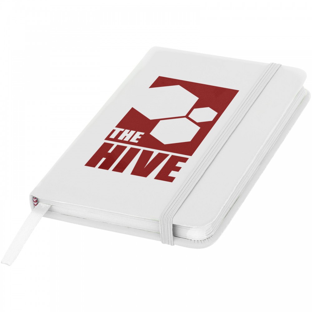 Spectrum A6 jegyzetfüzet színes fedéllel, jelölőszalaggal és gumipánttal, 96 vonalas lappal (60g/m2). PVC fedett karton. Emblémázás: Szitanyomás, Tamponnyomás, UV nyomtatás