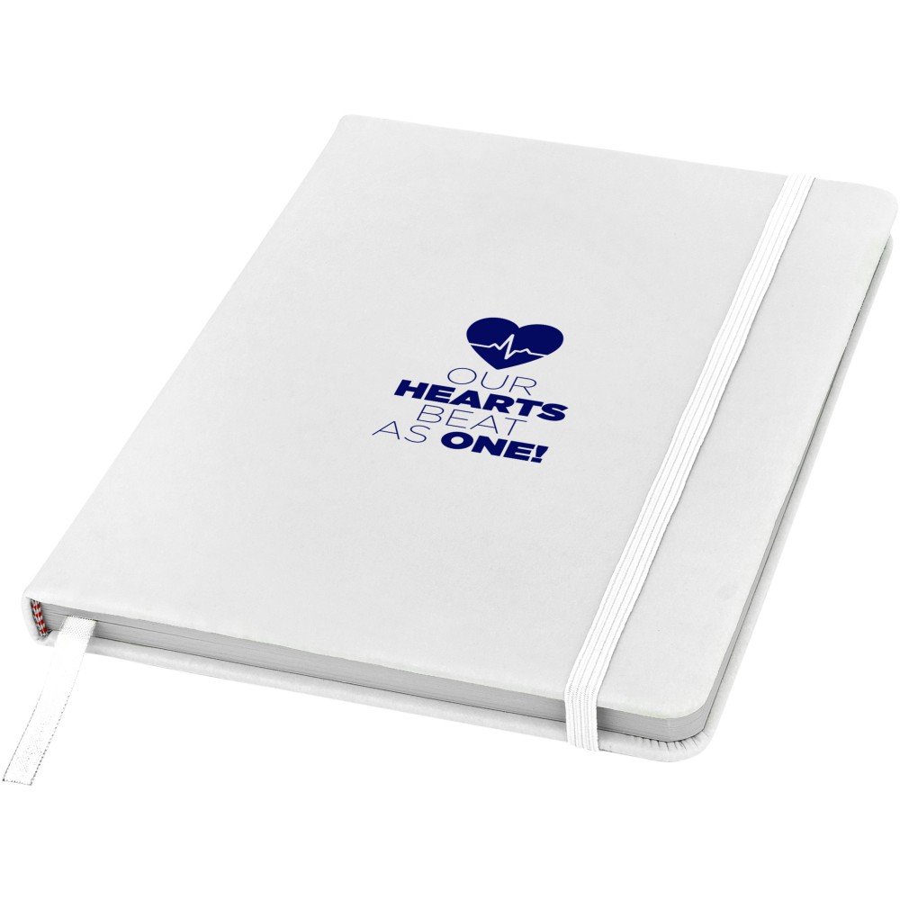 Spectrum A/5 jegyzetfüzet színes fedéllel, jelölőszalaggal és gumipánttal, 96 vonalas lappal (60g/m2). Emblémázás: Szitanyomás, Tamponnyomás, UV nyomtatás