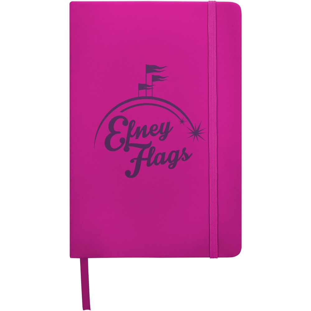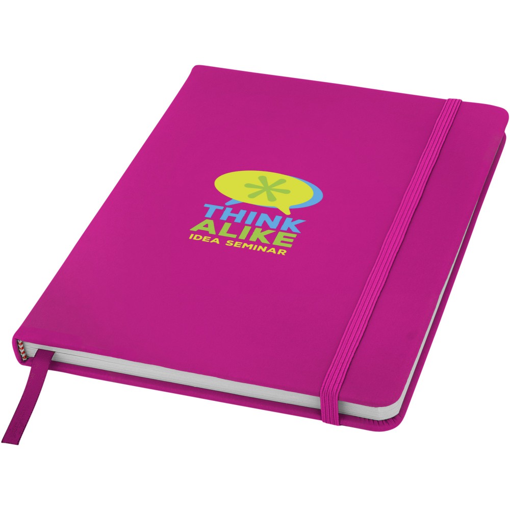 Spectrum A/5 jegyzetfüzet színes fedéllel, jelölőszalaggal és gumipánttal, 96 vonalas lappal (60g/m2). Emblémázás: Szitanyomás, Tamponnyomás, UV nyomtatás