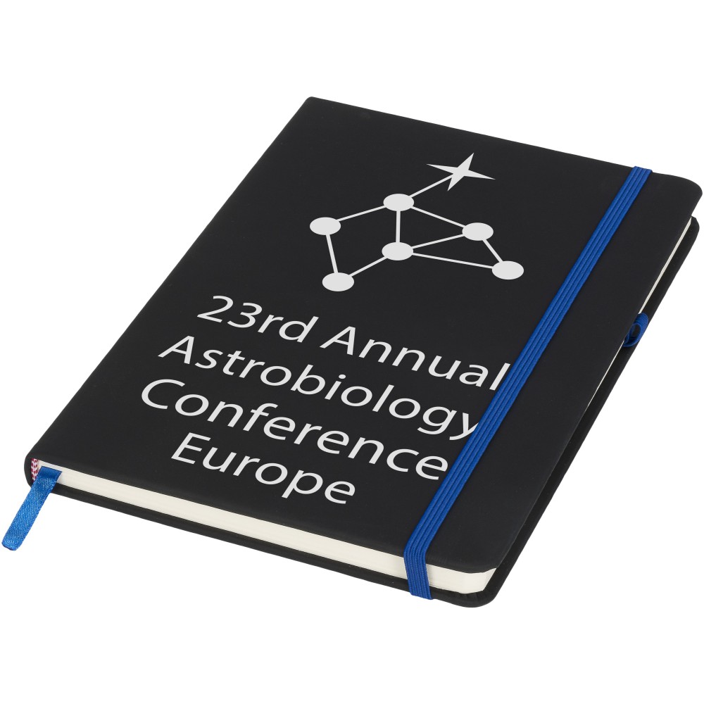 Puha felületű füzet színes gumipánttal, könyvjelzővel és tullhurokkal. 96 krémszínű vonalas lapot tartalmaz. Emblémázás: Szitanyomás, Tamponnyomás, UV nyomtatás